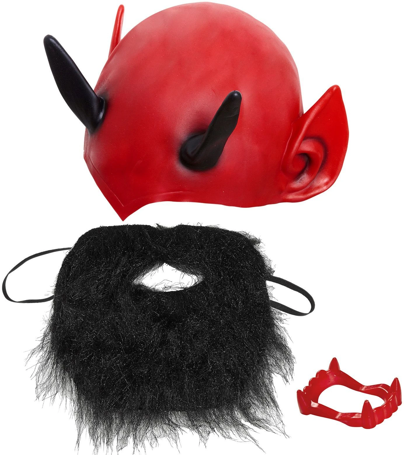 - Materiaal: Hoofddeksel: 100% pvc, kunstgebit: 100% pp, beard: 100% polyester