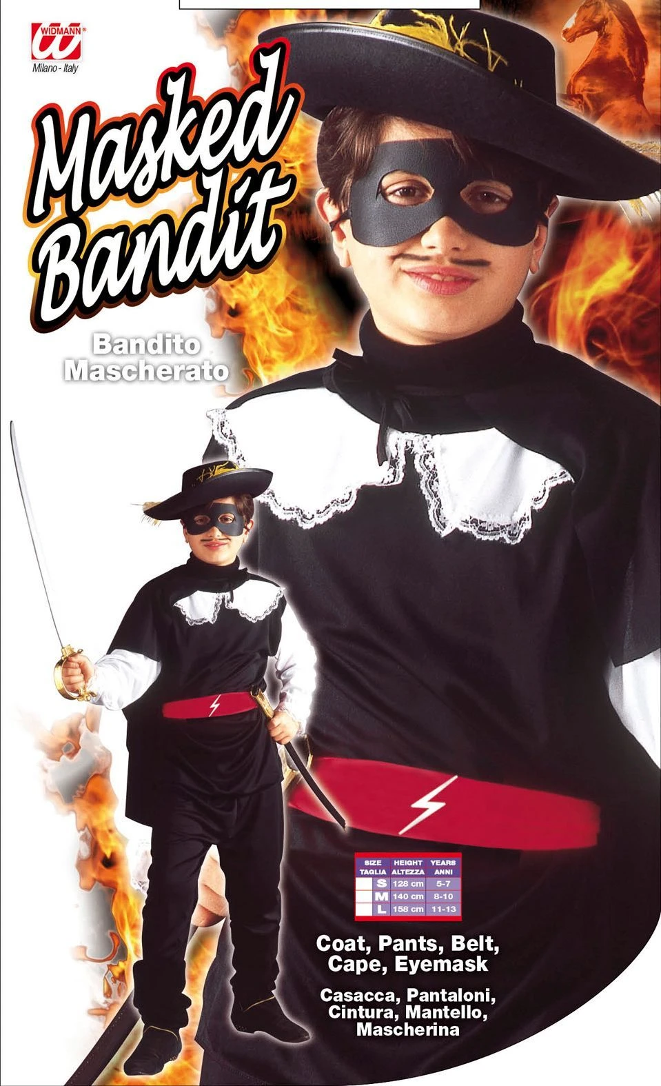 - Pakketinhoud: Jas, broek, riem, cape, oogmasker